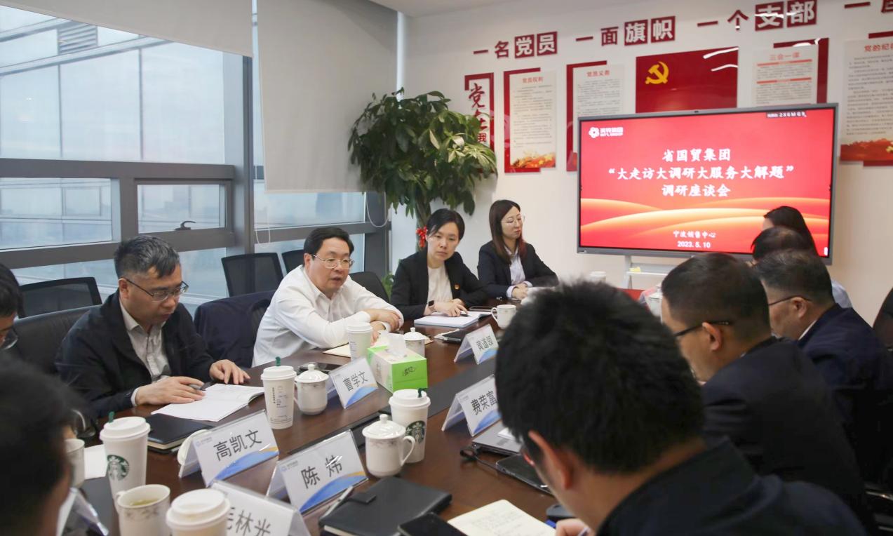 5月10日、11日,省國貿集團黨委委員、副總經理黃道領一行來英特集團下屬寧波銷售中心寧波物流開展入企服務調研省國貿集團投資管理部相關負責人陪同。英特集團黨委副書記、工會主席楊永軍,黨委委員、副總經理費榮富、呂寧,總經理助理朱強寧波銷售中心及相關企業經營班子參加座談交流