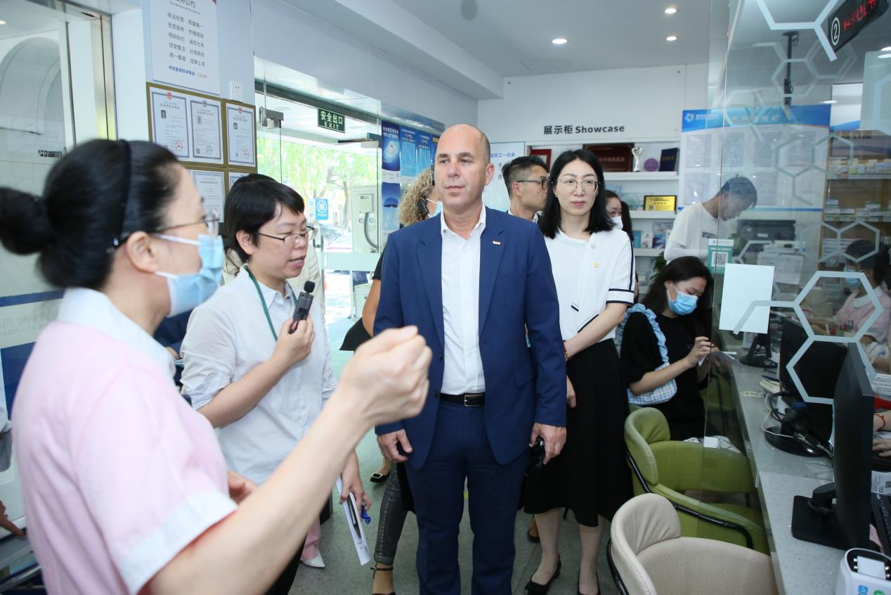 簽約會議前,Mark Sabag副總裁一行實(shí)地走訪了英特怡年清吟街店,詳細(xì)了解英特DTP藥房服務(wù)模式和流程。