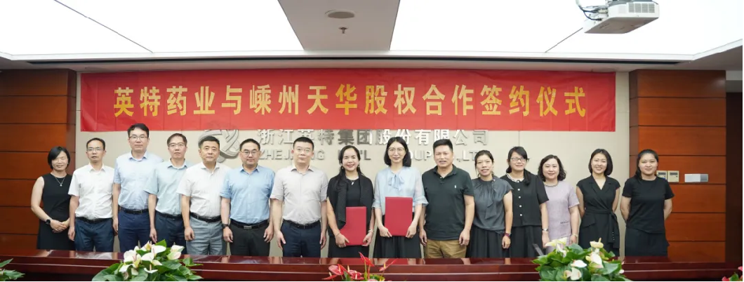 7月2日,英特藥業與嵊州市天華大藥房醫藥有限公司股權合作簽約儀式隆重舉行。省國貿集團黨委委員、副總經理,英特集團黨委書記、董事長應徐頡,英特集團總經理、英特藥業董事長汪洋,嵊州天華創始人呂健書、董事長章魯野及雙方相關負責人出席本次簽約儀式,并共同簽署《股權轉讓協議》。
